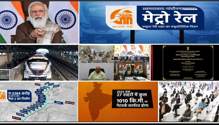 ആത്മനിർഭര ഭാരതത്തിലേക്ക് സംഭാവന ചെയ്യുന്ന നഗരങ്ങളായി അഹമ്മദാബാദിനെയും സൂറത്തിനെയും വിശേഷിപ്പിച്ച പ്രധാനമന്ത്രി അഹമ്മദാബാദിൽ മെട്രോ വിക്ഷേപിച്ചപ്പോൾ ഉണ്ടായ ആവേശം, അഹമ്മദാബാദിൻറെ സ്വപ്നങ്ങളെയും സ്വത്വത്തെയും മെട്രോയുമായി എങ്ങനെ ബന്ധിപ്പിച്ചുവെന്ന് ഓർമിച്ചു. നഗരത്തിലെ പുതിയ പ്രദേശങ്ങളെ ഈ സുഖപ്രദമായ ഗതാഗത മാർഗ്ഗവുമായി ബന്ധിപ്പിക്കുന്നതിനാൽ രണ്ടാം ഘട്ട മെട്രോ ജനങ്ങൾക്ക് ഗുണം ചെയ്യും. അതുപോലെ, സൂറത്തിനും മികച്ച കണക്റ്റിവിറ്റി അനുഭവപ്പെടും. ഭാവിയിലെ ആവശ്യകത കണക്കിലെടുത്ത് ഈ പദ്ധതികൾ വിഭാവനം ചെയ്യുന്നുവെന്ന് പ്രധാനമന്ത്രി പറഞ്ഞു.