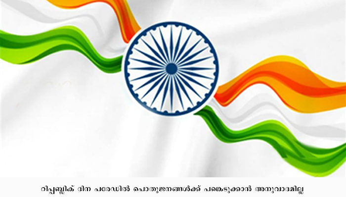 റിപ്പബ്ലിക് ദിന പരേഡില് പൊതുജനങ്ങള്ക്ക് പങ്കെടുക്കാന് അനുവാദമില്ല. പരേഡില് പരമാവധി 100 പേര്ക്ക് മാത്രമാണ് പങ്കെടുക്കാന് അനുമതി. പരേഡില് ദേശീയ സല്യൂട്ട് ആവശ്യമാണ്. മാര്ച്ച് പാസ്റ്റ് പാടില്ല.