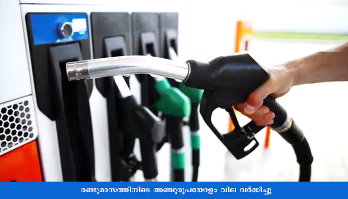 തിരുവനന്തപുരം: പ്രതിന്ധികളുടെ കോവിഡ്‌ കാലത്തും രാജ്യത്ത്‌ സര്‍വ്വകാല റെക്കാര്‍ഡുകളും ഭേദിച്ച്‌ ഇന്ധനവില മുന്നോട്ട് കുതിക്കുന്നു. സംസ്ഥാനത്ത്‌ ഇന്ധനവില വീണ്ടും കൂട്ടി. പെട്രോളിനും ഡീസലിനും 25 പൈസവീതം ആണ്‌ കൂട്ടിയിരിക്കുന്നത്‌. പെട്രോള്‍ 85.72 രൂപ. ഡീസല്‍ 79.88 രൂപ എന്നിങ്ങനെയാണ്‌ നിലവിലെ വില. രണ്ടുമാസത്തിനിടെ അഞ്ചുരൂപയോളം വില വര്‍ദ്ധിച്ചു. രാജ്യത്തെ ഇന്ധനവില മൂലം വലയുകയാണ്‌ പൊതുജനം.