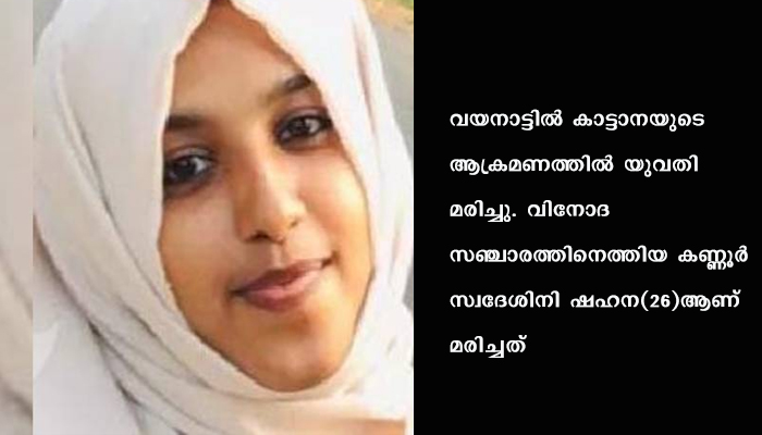 വയനാട്:വയനാട്ടില് കാട്ടാനയുടെ ആക്രമണത്തില് യുവതി മരിച്ചു. വിനോദ സഞ്ചാരത്തിനെത്തിയ കണ്ണൂര് സ്വദേശിനി ഷഹന(26)ആണ് മരിച്ചത്. മോപ്പാടി, എളമ്പിലേരി റിസോര്ട്ടിലെ ടെന്റില് താമസിക്കുമ്പോഴാണ് ആനയുടെ ആക്രമണം ഉണ്ടായത്. യുവതിയെ സ്വകാര്യ മെഡിക്കല് കോളേജാശുപത്രിയിലെത്തിച്ചപ്പോഴേക്കും മരണം സംഭവിച്ചിരുന്നു.