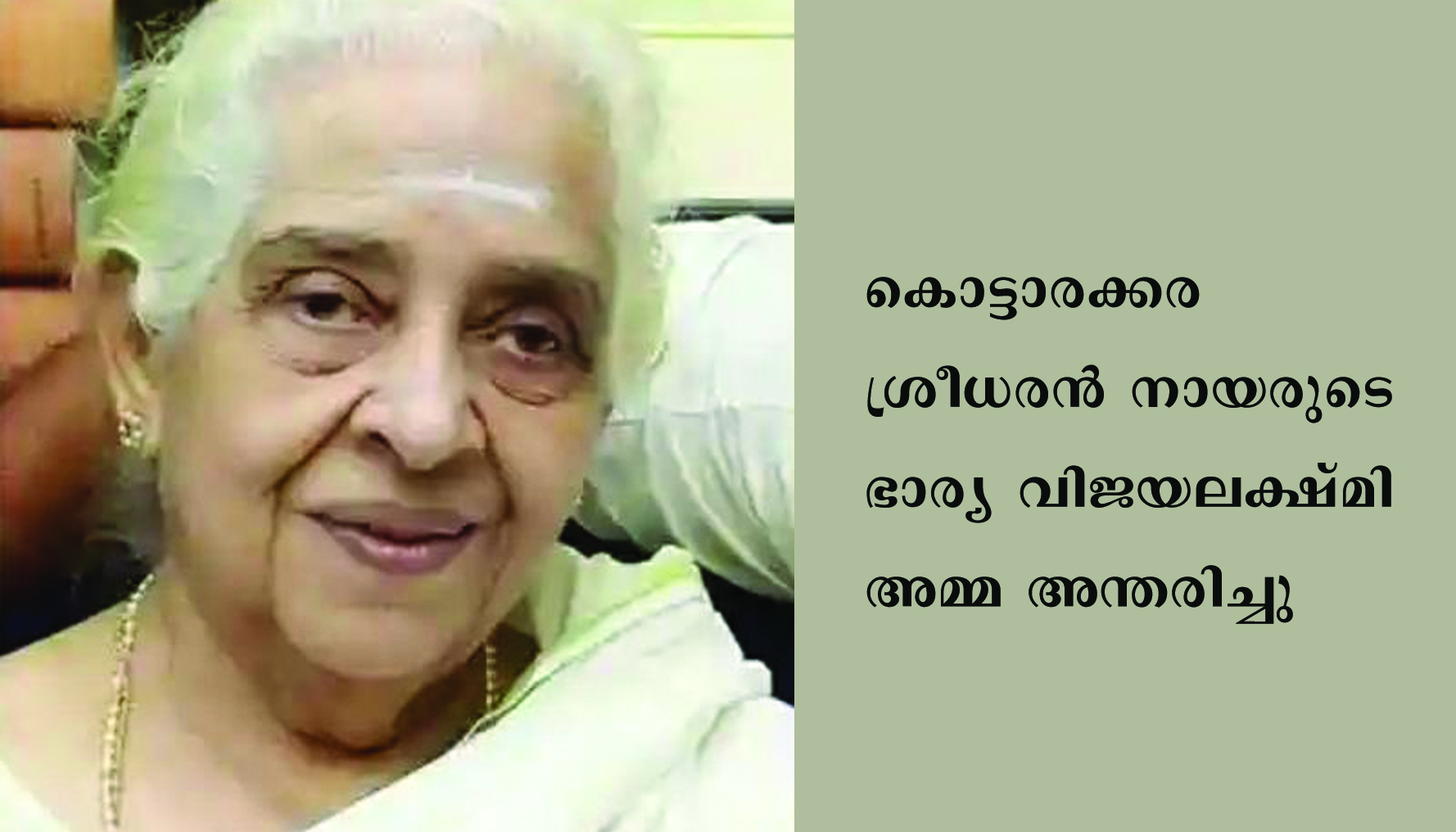 കൊട്ടാരക്കര ശ്രീധരന് നായരുടെ ഭാര്യയും സായികുമാറിൻ്റെ അമ്മയുമായ വിജയലക്ഷ്മി അമ്മ അന്തരിച്ചു