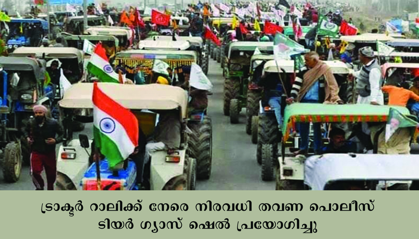 സിന്ഗുവിലെ കര്ണല് ബൈപ്പാസിൽ പൊലീസ് കര്ഷകരുമായി ഏറ്റുമുട്ടി. ഷാജഹാന്പൂരില് ട്രാക്ടര് റാലി തടയാന് പൊലീസ് ഉയര്ത്തിയ ബാരിക്കേടുകള് പൊളിച്ച് നീക്കിയാണ് റാലി മുന്നോട്ട് നീങ്ങിയത്. നേരത്തേ പൊലീസുമായു ണ്ടാക്കിയ കരാർ പ്രകാരം നിശ്ചയിച്ച സമയത്തിലും നേരത്തേ റാലി തുടങ്ങിയതിനാലാണ് പൊലീസ് തടഞ്ഞത്.