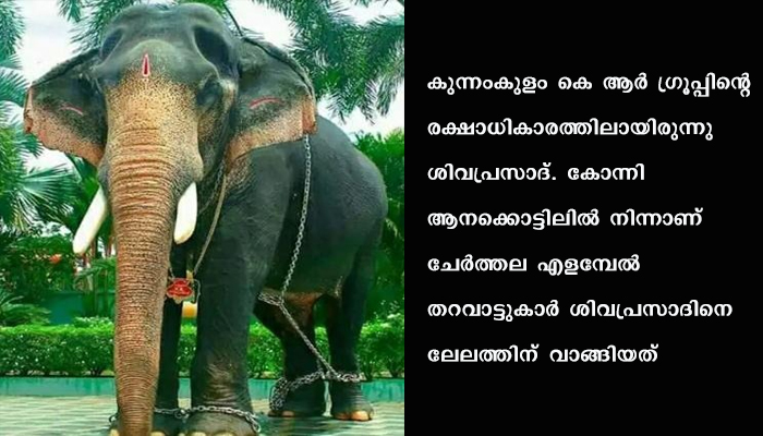 നാടന് ആനയായിരുന്ന ശിവപ്രസാദ് തൃശൂര് പൂരം ഉള്പ്പെടെ നിരവധി ഉത്സവങ്ങളില് പങ്കെടുത്തിട്ടുണ്ട്. കുന്നംകുളം കെ ആര് ഗ്രൂപ്പിന്റെ രക്ഷാധികാരത്തിലായിരുന്നു ശിവപ്രസാദ്. കോന്നി ആനക്കൊട്ടിലില് നിന്നാണ് ചേര്ത്തല എളമ്പേല് തറവാട്ടുകാര് ശിവപ്രസാദിനെ ലേലത്തിന് വാങ്ങിയത്.