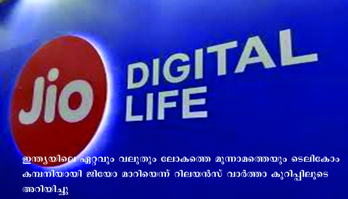 ന്യൂഡൽഹി: ലോകത്തെ കരുത്തുളള ബ്രാന്റുകളുടെ പട്ടികയില് റിലയന്സ് ജിയോ അഞ്ചാമത്. ഇന്ത്യയിലെ ഏറ്റവും വലുതും ലോകത്തെ മൂന്നാമത്തെയും ടെലികോം കമ്പനിയായി ജിയോ മാറിയെന്ന് റിലയന്സ് വാര്ത്താ കുറിപ്പിലൂടെ അറിയിച്ചു. ബ്രാന്റ് ഫിനാന്സ് ഗ്ലോബല് 500 പട്ടികയില് ജിയോ അഞ്ചാമതെത്തി. നൂറില് 91.7 ബിഎസ്ഐ സ്കോര് നേടിയാണ് ജിയോ നേട്ടം സ്വന്തമാക്കിയതെന്ന് വാര്ത്താ കുറിപ്പ് പറയുന്നു.