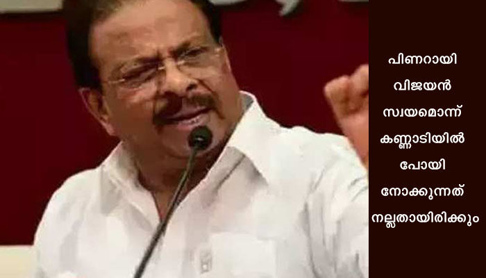 ഒരാളുടെ തൊഴില്‍ ഏതാണെന്ന് പറയുന്നതില്‍ അഭിമാനമാണ് വേണ്ടത് പിണറായി വിജയന്‍ സ്വയമൊന്ന് കണ്ണാടിയില്‍ പോയി നോക്കുന്നത് നല്ലതായിരിക്കുമെന്നും സുധാകരന്‍ പറഞ്ഞു.