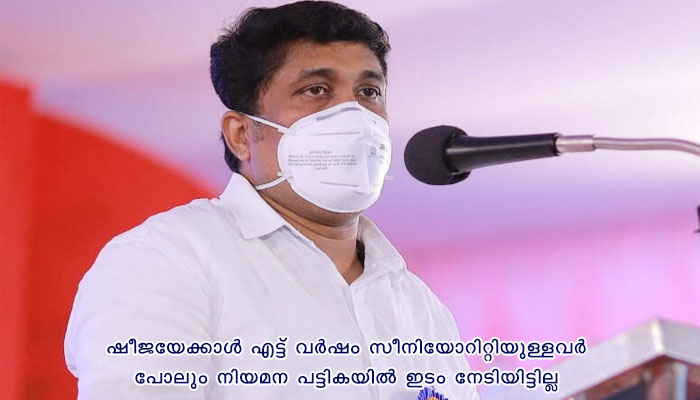 2008 ല് ജോലിയില് പ്രവേശിപ്പിച്ചവരെ 2013 ല് യുഡിഎഫ് പിരിച്ചുവിട്ടിരുന്നു. ഇവരെ പിന്നീട് 2014 ലാണ് വീണ്ടും ജോലിക്ക് തിരികെ കയറ്റുന്നത്. ഷീജയേക്കാള് എട്ട് വര്ഷം സീനിയോറിറ്റിയുള്ളവര് പോലും നിയമന പട്ടികയില് ഇടം നേടിയിട്ടില്ല.