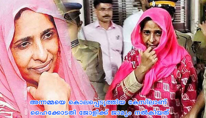 കൂടത്തായി കൊലപാതക പരമ്പരയിലെ അന്നമ്മയെ കൊലപ്പെടുത്തിയ കേസിലാണ് ഹൈക്കോടതി ജോളിക്ക് ജാമ്യം നൽകിയത്. ഇതിനെതിരെ സംസ്ഥാന സർക്കാർ സുപ്രിംകോടതിയെ സമീപിക്കുകയായിരുന്നു. സർക്കാരിന്റെ ഹർജി സുപ്രിംകോടതി ഫയലിൽ സ്വീകരിച്ചു. പ്രതിയെ വിട്ടയച്ചിട്ടുണ്ടെങ്കിൽ ഉടൻ കസ്റ്റഡിയിൽ എടുക്കണമെന്നും സുപ്രിംകോടതി നിർദേശിച്ചു.