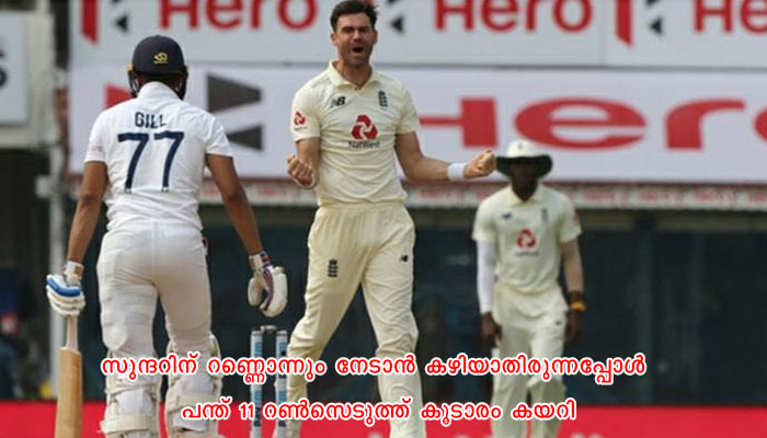 ഇംഗ്ലണ്ടിന് വേണ്ടി രണ്ടാം ഇന്നിംഗ്സില് ജെയിംസ് ആഡേഴ്സണ് 3 വിക്കറ്റും ജാക്ക് ലീ 4 വിക്കറ്റും നേടി. യുവ സ്പിന്നര് ഡോമ്നിക് ബെസ്സും ജോഫ്രാ ആര്ച്ചറും ബെന് സ്റ്റോക്സും ഒരോ വിക്കറ്റ് വീതം വീഴ്ത്തി. ആദ്യ ഇന്നിംഗ്സില് ഇംഗ്ലണ്ട് ഉയര്ത്തിയ 578ന്റെ കൂറ്റന് സ്കോര് പിന്തുടര്ന്ന ഇന്ത്യ 337ല് അവസാനിച്ചിരുന്നു. ടി20 ശൈലിയില് ബാറ്റ് വീശിയ ഋഷഭ് പന്തും (91 റണ്സ്), വാലറ്റത്ത് ഓള്റൗണ്ടര് വാഷിംഗ്ടണ് സുന്ദറും (85 റണ്സ്)* നടത്തിയ രക്ഷാപ്രവര്ത്തനമാണ് ഇന്ത്യക്ക് മാന്യമായ സ്കോര് സമ്മാനിച്ചത്. ഇന്നിംഗ്സില് ചേതേശ്വര് പൂജാരയും (73 റണ്സ്) അര്ധസെഞ്ച്വറി നേടി.