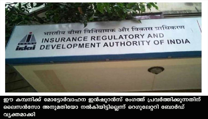 ബെംഗളൂരു: ബെംഗളൂരു ആസ്ഥാനമായി പ്രവര്ത്തിക്കുന്ന ഡിജിറ്റല് നാഷണല് മോട്ടോര് ഇന്ഷ്വറന്സ് കമ്പനി വ്യാജനാണെന്നും പൊതുജനങ്ങള് ഇന്ഷ്വറന്സിനായി അതിനെ ആശ്രയിക്കരുതെന്നും ഇൻഷുറൻസ് റഗുലേറ്ററി ആന്റ് ഡവലപ്പ്മെന്റ് അതോരിറ്റി ഓഫ് ഇന്ത്യാ. ഈ കമ്പനിക്ക് മോട്ടോര്വാഹന ഇൻഷുറൻസ് രംഗത്ത് പ്രവര്ത്തിക്കുന്നതിന് ലൈസന്സോ അനുമതിയോ നല്കിയിട്ടില്ലെന്ന് റെഗുലേറ്ററി ബോര്ഡ് വ്യക്തമാക്കി. ജനം ഇക്കാര്യത്തില് ജാഗ്രത പാലിക്കണമെന്നും വ്യാജന്മാരുടെ ചതിക്കുഴിയില് വീഴരുതെന്നും നിര്ദ്ദേശമുണ്ട്.