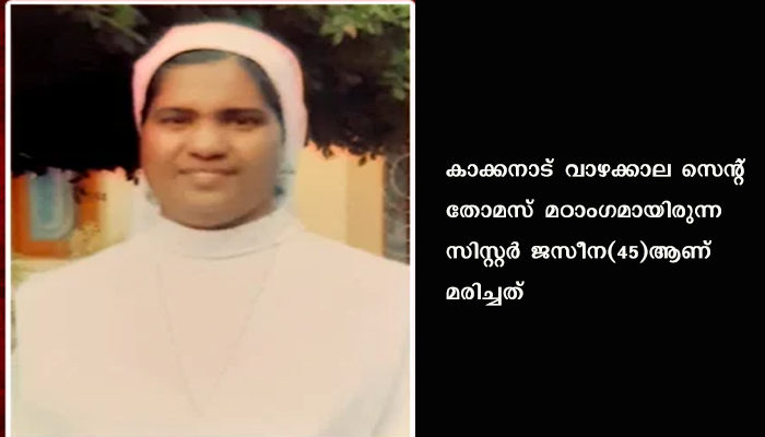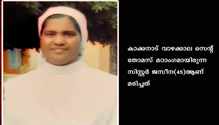 കൊച്ചി: മഠത്തില് നിന്ന് കാണാതായ സന്യാസിനിയെ മരിച്ചനിലയില് കണ്ടെത്തി. കാക്കനാട് വാഴക്കാല സെന്റ് തോമസ് മഠാംഗമായിരുന്ന സിസ്റ്റര് ജസീന(45)ആണ് മരിച്ചത്. ഇടുക്കി കീരിത്തോട് സ്വദേശിനിയാണ്.