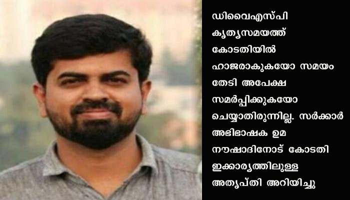 ഡിവൈഎസ്പി കൃത്യസമയത്ത് കോടതിയില് ഹാജരാകുകയോ സമയം തേടി അപേക്ഷ സമര്പ്പിക്കുകയോ ചെയ്യാതിരുന്നില്ല. സര്ക്കാര് അഭിഭാഷക ഉമ നൗഷാദിനോട് കോടതി ഇക്കാര്യത്തിലുള്ള അതൃപ്തി അറിയിച്ചു. ഡിവൈഎസ്പി ഹാജരാകാത്തതിനാല് അപകടദിവസത്തെ സിസിടിവി ദൃശ്യങ്ങള് പകര്പ്പെടുക്കാനുള്ള ഉപകരണങ്ങള് സഹിതം കോടതിയില് ഹാജരാക്കാന് തിരുവനന്തപുരം മൂന്നാം ജുഡീഷ്യല് ഫസ്റ്റ് ക്ലാസ് മജിസ്ട്രേറ്റ് എ അനീസ ഉത്തരവിട്ടു.