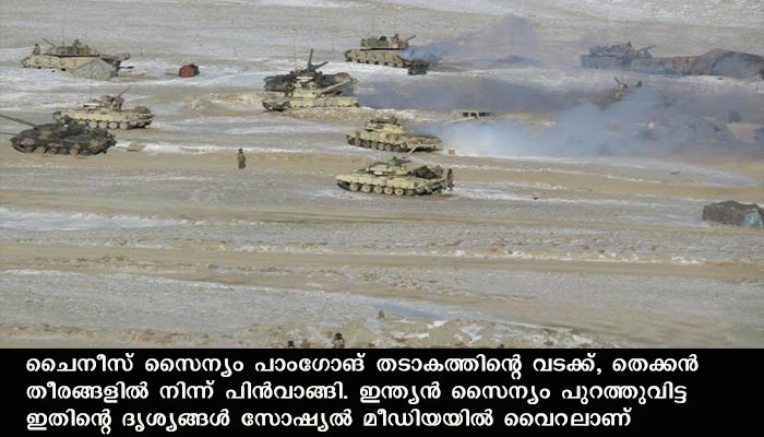പാംഗോങ് മേഖലയില് നിന്ന് ചൈനീസ് പിന്മാറ്റം: വിഡിയോ ദൃശ്യങ്ങളുമായി ഇന്ത്യ