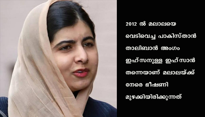 ‘ വീട്ടിലേക്ക് തിരിച്ചു വാ, നിന്നോടും നിന്റെ പിതാവിനോടും ഞങ്ങള്ക്ക് കണക്കു തീര്ക്കാനുണ്ട്. ഇത്തവണ ഒരു പിഴവും സംഭവിക്കില്ല,’ ഇഹ്സാന്റെ ട്വീറ്റില് പറയുന്നു. ഭീഷണിക്കു പിന്നാലെ 2017 ല് അറസ്റ്റിലായ ഇയാള് എങ്ങനെയാണ് രക്ഷപ്പെട്ടതെന്ന് പാക് പ്രധാനമന്ത്രിയും സൈന്യവും വ്യക്തമാക്കണമെന്ന് മലാല ആവശ്യപ്പെട്ടു.