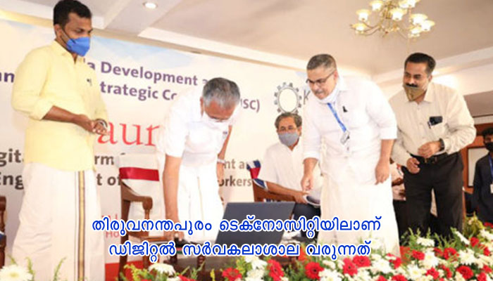 തിരുവനന്തപുരം: കേരള യൂണിവേഴ്സിറ്റി ഓഫ് ഡിജിറ്റൽ സയൻസസ്, ഇന്നൊവേഷൻ ആന്റ് ടെക്നോളജിയുടെ ഉദ്ഘാടനം ഫെബ്രുവരി 20 രാവിലെ 9.45ന് നടക്കും. ഗവർണർ ആരിഫ് മുഹമ്മദ് ഖാൻ ഉദ്ഘാടനം ചെയ്യും. തിരുവനന്തപുരം ടെക്നോസിറ്റിയിലാണ് ഡിജിറ്റൽ സർവകലാശാല വരുന്നത്. മുഖ്യമന്ത്രി പിണറായി വിജയൻ അധ്യക്ഷത വഹിക്കും. ടൂറിസം ദേവസ്വം മന്ത്രി കടകംപള്ളി സുരേന്ദ്രൻ, ഉന്നത വിദ്യാഭ്യാസ മന്ത്രി ഡോ. കെ.ടി. ജലീൽ, ഡെപ്യൂട്ടി സ്പീക്കർ വി. ശശി, അടൂർ പ്രകാശ് എം.പി എന്നിവർ മുഖ്യപ്രഭാഷണം നടത്തും. ജില്ലാ പഞ്ചായത്ത് പ്രസിഡന്റ് ഡി. സുരേഷ്കുമാർ, മറ്റു ജനപ്രതിനിധികൾ, ഡിജിറ്റൽ സർവകലാശാല വൈസ് ചാൻസലർ ഡോ. സജി ഗോപിനാഥ്, ഐ. ഐ. ഐ ടി എം-കെ ചെയർമാൻ എം. മാധവൻ നമ്പ്യാർ, ഡയറക്ടർ ഡോ. എലിസബത്ത് ഷേർലി എന്നിവർ സംബന്ധിക്കും.