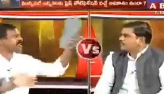 അമരാവതി തര്ക്ക വിഷയത്തിലായിരുന്നു ചാനല് ചര്ച്ച സംഘടിപ്പിച്ചത്. ചര്ച്ചക്കിടെ ആന്ധ്രാപ്രദേശ് ബി.ജെ.പി ജനറല് സെക്രട്ടറി എസ്. വിഷ്ണുവര്ധന് റെഡ്ഡിയും അമരാവതി ജോയിന്റ് ആക്ഷന് കമ്മിറ്റി അംഗമായ ശ്രീനിവാസ റാവുവും തമ്മില് വാക്കുതര്ക്കമുണ്ടാവുകയായിരുന്നു.