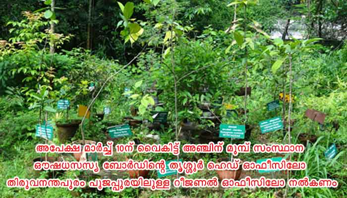 തിരുവനന്തപുരം: ഔഷധസസ്യ പ്രാദേശിക സംഭരണ കേന്ദ്രം, ഡ്രൈയിംഗ് യാർഡ്, അർദ്ധ സംസ്കരണ കേന്ദ്രം, സംഭരണ കേന്ദ്രം തുടങ്ങിയ പദ്ധതികൾക്ക് സർക്കാർ-അർദ്ധ സർക്കാർ സ്ഥാപനങ്ങൾ അംഗീകൃത സർക്കാരേതര സ്ഥാപനങ്ങൾ, പഞ്ചായത്തുകൾ, അംഗീകൃത സൊസൈറ്റികൾ, സഹകരണ സംഘങ്ങൾ, കർഷക സംഘങ്ങൾ, കുടുംബശ്രീകൾ തുടങ്ങിയ സ്ഥാപനങ്ങളിൽ നിന്ന് സംസ്ഥാന ഔഷധസസ്യ ബോർഡ് അപേക്ഷ ക്ഷണിച്ചു. പദ്ധതികൾ സമർപ്പിക്കുന്നതിനുള്ള അപേക്ഷാഫോമുകളും വിശദവിവരങ്ങളും www.smpbkerala.org യിൽ ലഭിക്കും. അനുബന്ധ രേഖകൾ സഹിതം (പദ്ധതിരേഖകളുടെ അസ്സലും മുന്ന് പകർപ്പുകളും) അപേക്ഷ മാർച്ച് 10ന് വൈകിട്ട് അഞ്ചിന് മുമ്പ് സംസ്ഥാന ഔഷധസസ്യ ബോർഡിന്റെ തൃശ്ശൂർ ഹെഡ് ഓഫീസിലോ തിരുവനന്തപുരം പൂജപ്പുരയിലുള്ള റീജണൽ ഓഫീസിലോ നൽകണം. വിലാസം: ചീഫ് എക്സിക്യൂട്ടീവ് ഓഫീസർ, സംസ്ഥാന ഔഷധസസ്യ ബോർഡ്, ഷൊർണ്ണൂർ റോഡ്, തിരുവമ്പാടി.പി.ഒ, തൃശ്ശൂർ- 680022. ഫോൺ: 0487-2323151. റീജണൽ ഓഫീസ്, ആയുർവേദ റിസർച്ച് ഇൻസ്റ്റിറ്റ്യൂട്ട് കാമ്പസ്, പൂജപ്പുര, തിരുവനന്തപുരം- 695012. ഫോൺ: 0471-2347151.