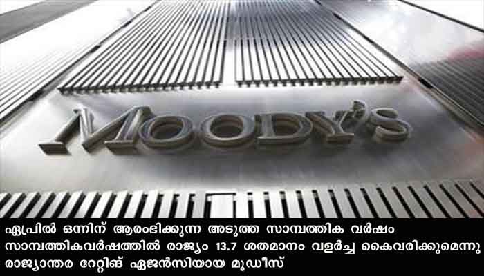 അടുത്ത സാമ്പത്തിക വര്ഷം ഇന്ത്യ 13.7% വളര്ച്ച കൈവരിക്കുമെന്ന് മൂഡീസ്