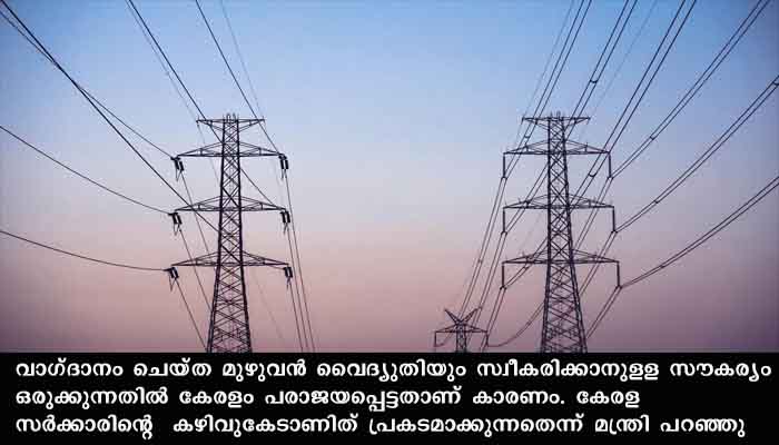 വാഗ്ദാനം ചെയ്ത മുഴുവന് വൈദ്യുതിയും സ്വീകരിക്കാനുളള സൗകര്യം ഒരുക്കുന്നതില് കേരളം പരാജയപ്പെട്ടതാണ് കാരണം.കേരള സര്ക്കാരിന്റെ കഴിവുകേടാണിത് പ്രകടമാക്കുന്നതെന്ന് മന്ത്രി പറഞ്ഞു. ബിജെപി അദ്ധ്യക്ഷന് കെ.സുരേന്ദ്രന് നയിക്കുന്ന വിജയ യാത്രയുടെ മലപ്പുറത്തെ സമാപന യോഗം ഉദ്ഘാടനം ചെയ്യുകയായിരുന്നു അദ്ദേഹം. കേരളത്തില് വര്ഗ്ഗീയതയും വിഭാഗീയതയും വളര്ത്തി വോട്ട് തട്ടാനാണ് എല്ഡിഎഫ്, യുഡിഎഫ് മുന്നണികള് ശ്രമിക്കുന്നതെന്ന് കേന്ദ്രമന്ത്രി പറയുന്നു. ഇത്തരം വര്ഗ്ഗീയ രാഷ്ട്രീയത്തിന്റെ ഇരയാണ് കഴിഞ്ഞ ദിവസം തീവ്ര വാദികളാല് കൊലചെയ്യപ്പെട്ട ആര്എസ്എസ് പ്രവര്ത്തകനെന്ന് അദ്ദേഹം പറഞ്ഞു.