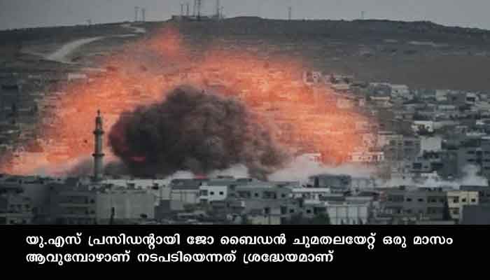 ന്യൂയോര്‍ക്ക: സിറിയയില്‍ ബോംബാക്രമണം നടത്തി അമേരിക്ക. ഇറാന്‍ പിന്തുണയോടെ പ്രവര്‍ത്തിക്കുന്ന തീവ്രവാദ സംഘങ്ങള്‍ക്ക് നേരെയാണ് ബോംബാക്രമണം. പരിമിതമായ ശേഷിയിലാണ് അമേരിക്ക ആക്രമണം നടത്തിയതെന്നും ആളപായം ഉണ്ടായതായി വിവരം ലഭിച്ചിട്ടില്ലെന്നും വാര്‍ത്ത ഏജന്‍സികള്‍ റിപ്പോര്‍ട്ട് ചെയ്യുന്നു.യു.എസ് പ്രസിഡന്റായി ജോ ബൈഡന്‍ ചുമതലയേറ്റ് ഒരു മാസം ആവുമ്പോഴാണ് നടപടിയെന്നത് ശ്രദ്ധേയമാണ്.