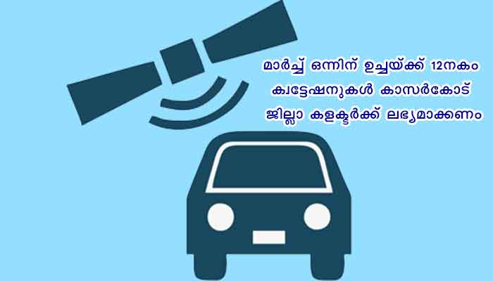 കാസർകോട്: കേരള നിയമസഭാ തിരഞ്ഞെടുപ്പുമായി ബന്ധപ്പെട്ട് വാഹനങ്ങള്ക്ക് 50 എണ്ണം ജി പിഎസ് ട്രാക്കിങ് സിസ്റ്റം ഘടിപ്പിക്കാന് വിദഗ്ധരുടെ സേവനം ഉള്പ്പെടെ ലഭ്യമാക്കുന്നതിന് ക്വട്ടേഷന് ക്ഷണിച്ചു. മാര്ച്ച് ഒന്നിന് ഉച്ചയ്ക്ക് 12നകം ക്വട്ടേഷനുകള് കാസര്കോട് ജില്ലാ കളക്ടര്ക്ക് ലഭ്യമാക്കണം.