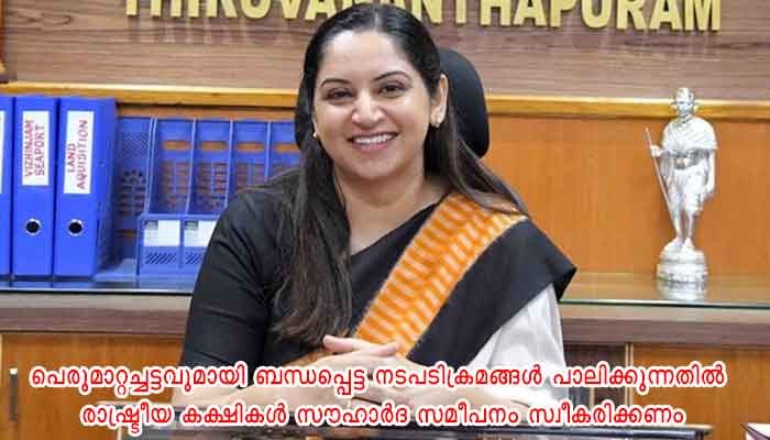 തിരുവനന്തപുരം: നിയമസഭാ തെരഞ്ഞെടുപ്പിന്റെ നടപടിക്രമങ്ങള്‍ പൂര്‍ണമായി നടപ്പാക്കുന്നതിന് എല്ലാ സഹകരണവും നല്‍കണമെന്നു ജില്ലയിലെ രാഷ്ട്രീയ കക്ഷി നേതാക്കളോടു ജില്ലാ തെരഞ്ഞെടുപ്പ് ഓഫിസര്‍കൂടിയായ കളക്ടര്‍ ഡോ. നവ്‌ജ്യോത് ഖോസ അഭ്യര്‍ഥിച്ചു. പെരുമാറ്റച്ചട്ടവുമായി ബന്ധപ്പെട്ട നടപടിക്രമങ്ങള്‍ പാലിക്കുന്നതില്‍ രാഷ്ട്രീയ കക്ഷികള്‍ സൗഹാര്‍ദ സമീപനം സ്വീകരിക്കണമെന്നും കളക്ടര്‍ പറഞ്ഞു. തെരഞ്ഞെടുപ്പുമായി ബന്ധപ്പെട്ടു കളക്ടറേറ്റ് കോണ്‍ഫറന്‍സ് ഹാളില്‍ വിളിച്ചുചേര്‍ത്ത രാഷ്ട്രീയ കക്ഷി നേതാക്കളുടെ യോഗത്തില്‍ സംസാരിക്കുകയായിരുന്നു കളക്ടര്‍.