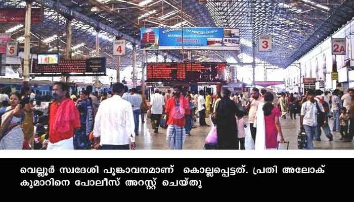 കൊല്ലപ്പെട്ട പൂങ്കാവനവും അലോക് കുമാറും ദീര്ഘകാലമായി സെന്ട്രല് സ്റ്റേഷനിലെ തൊഴിലാളികളാണ്. കഴിഞ്ഞ ദിവസം യാത്രക്കാരുടെ വിശ്രമ മുറിയില് വച്ച് ഇരുവരും തമ്മില് വാക്കുതര്ക്കമുണ്ടായി. ഇതിന് പിന്നാലെ അലോക് കുമാര് പൂങ്കാവനത്തെ കല്ലുകൊണ്ട് തലക്കടിക്കുകയായിരുന്നു. ഗുരുതരമായി പരിക്കേറ്റ പൂങ്കാവനത്തെ ആശുപത്രിയില് പ്രവേശിപ്പിച്ചെങ്കിലും വ്യാഴാഴ്ച രാവിലെ മരിച്ചു. അലോക് കുമാറിനെ കഴിഞ്ഞ ദിവസം തന്നെ ആര്പിഎഫ് പിടികൂടി പോലീസിന് കൈമാറിയിരുന്നു.