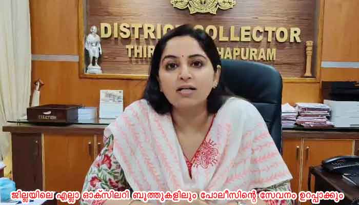 ജില്ലയിലെ എല്ലാ ഓക്സിലറി ബൂത്തുകളിലും പോലീസിന്റെ സേവനം ഉറപ്പാക്കും. സിറ്റി, റൂറല് പ്രദേശങ്ങളില് പൊലീസ് പട്രോളിങ് ശക്തിപ്പെടുത്തും. ആവശ്യമെങ്കില് ഗ്രൂപ്പ് പട്രോളിങ്ങും നടത്തും. തെരഞ്ഞെടുപ്പിനു മുന്നോടിയായി നിലവില് പോലീസ് നടത്തിവരുന്ന പ്രവര്ത്തനങ്ങളും യോഗത്തില് വിവരിച്ചു. ജില്ലാ കളക്ടറുടെ അധ്യക്ഷതയില് ചേര്ന്ന യോഗത്തില് റൂറല് പോലീസ് മേധാവി പി.കെ മധു, ഡി.സി.പി പി.എ മുഹമ്മദ് ആരിഫ്, എ.എസ്.പി സേവ്യര് സെബാസ്റ്റ്യന്, തെരഞ്ഞെടുപ്പ് വിഭാഗം ഉദ്യോഗസ്ഥര് എന്നിവര് പങ്കെടുത്തു.