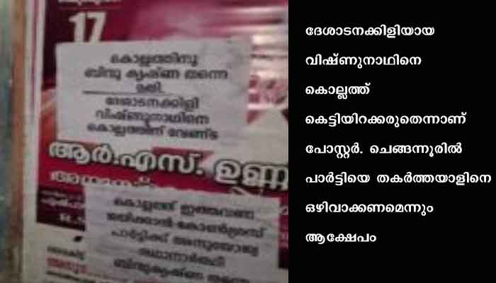 കൊല്ലം: യു ഡി എഫിലെ സ്ഥാനാർത്ഥി നിർണയ ചർച്ച അന്തിമഘട്ടത്തിലെത്തി നിൽക്കവെ കൊല്ലത്ത് പി സി വിഷ്ണുനാഥിനെതിരെ പോസ്റ്ററുകള് പ്രത്യക്ഷപ്പെട്ടു. ദേശാടനക്കിളിയായ വിഷ്ണുനാഥിനെ കൊല്ലത്ത് കെട്ടിയിറക്കരുതെന്നാണ് പോസ്റ്റര്. ചെങ്ങന്നൂരില് പാര്ട്ടിയെ തകര്ത്തയാളിനെ ഒഴിവാക്കണമെന്നും ആക്ഷേപം. ബിന്ദു കൃഷ്ണയാണ് കൊല്ലത്തെ അനുയോജ്യ സ്ഥാനാര്ത്ഥി എന്നും പോസ്റ്ററില് പറയുന്നു. 08/03/21 തിങ്കളാഴ്ച രാവിലെയാണ് പോസ്റ്ററുകൾ പ്രത്യക്ഷപ്പെട്ടത്.