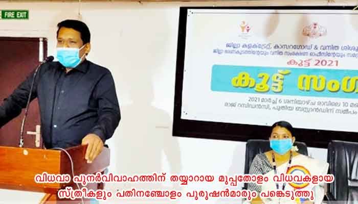 കാസർകോട് ജില്ലാ ഭരണകൂടത്തിന്റേയും വനിതാ ശിശു വികസന വകുപ്പിന് കീഴിൽ പ്രവർത്തിക്കുന്ന ജില്ലാതല വിധവാ സെല്ലിന്റെയും നേതൃത്വത്തിൽ വിധവകളായ സ്ത്രീകളുടെ സമഗ്ര ഉന്നമനത്തിനും സംരക്ഷത്തിനുമായി രൂപീകരിച്ച ‘കൂട്ട്’ പദ്ധതിയുടെ സംഗമം കാഞ്ഞങ്ങാട് രാജ് റസിഡൻസിയിൽ നടന്നു. വിധവാ പുനർവിവാഹത്തിന് തയ്യാറായ മുപ്പതോളം വിധവകളായ സ്ത്രീകളും പതിനഞ്ചോളം പുരുഷൻമാരും പങ്കെടുത്തു. സംസ്ഥാനത്ത് തന്നെ ആദ്യമായാണ് ഒരു ജില്ലയിൽ വിധവാ സംരക്ഷണത്തിനായി ഇത്തരം ഒരു പദ്ധതി നടപ്പിലാക്കുന്നത്.