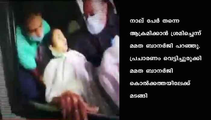 മമത ബാനർജിക്കു നേരെ ആക്രമണം, കാലിന് പരിക്ക് , പ്രചാരണം വെട്ടിച്ചുരുക്കി മമത ബാനര്‍ജി കൊല്‍ക്കത്തയിലേക്ക് മടങ്ങി