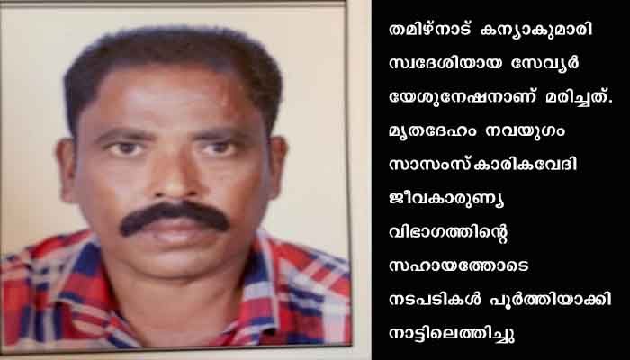 ദമ്മാം : മത്സ്യ ബന്ധനത്തിനിടയില് മസ്തിഷ്കാഘാതം ഉണ്ടായതിനെ തുടര്ന്ന് മത്സ്യ തൊഴിലാളി മരിച്ചു. തമിഴ്നാട് കന്യാകുമാരി സ്വദേശിയായ സേവ്യര് യേശുനേഷനാണ് മരിച്ചത് . മൃതദേഹം നവയുഗം സാംസ്കാരികവേദി ജീവകാരുണ്യ വിഭാഗത്തിന്റെ സഹായത്തോടെ നടപടികള് പൂര്ത്തിയാക്കി നാട്ടിലെത്തിച്ചു.