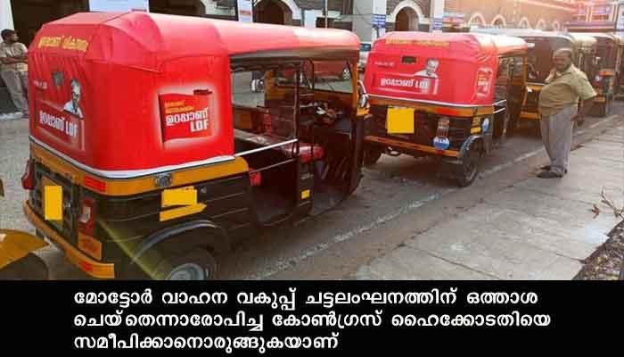 തിരുവനന്തപുരം: ഓട്ടോറിക്ഷകളിലെ എല്ഡിഎഫ് തെരഞ്ഞെടുപ്പു പ്രചരണ പോസ്റ്ററുകളെ ചൊല്ലി വിവാദം. മോട്ടോര്വാഹന നിയമത്തിന്റെ ലംഘനമാണെന്നാണ് ആക്ഷേപം. മോട്ടോര് വാഹന വകുപ്പ് ചട്ടലംഘനത്തിന് ഒത്താശ ചെയ്തെന്നാരോപിച്ച കോണ്ഗ്രസ് ഹൈക്കോടതിയെ സമീപിക്കാനൊരുങ്ങുകയാണ്. ഉറപ്പാണ് എല്ഡിഎഫ് എന്ന ഇടതുമുന്നണിയുടെ പ്രചരണ വാക്യം പോസ്റ്ററുകളായും ഫ്ളക്സായും ഓട്ടോറിക്ഷകളില് വ്യാപകമായി പതിക്കുകയാണ് . തലസ്ഥാന നഗരത്തില് 500 ഓളം ഓട്ടാറിക്ഷകളാണ് ഈ പ്രചരണ പോസ്റ്ററുകളുമായി സവാരി നടത്തുന്നത്. മോട്ടോര്വാഹന നിയമ പ്രകാരം ഒട്ടോറിക്ഷകളുടെ മുന്ഭാഗം മഞ്ഞ നിറത്തിലും ബാക്കി ഭാഗം കറുത്ത നിറത്തിലുമായിരിക്കണം.