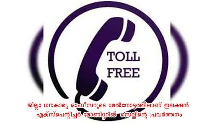 മലപ്പുറം: സ്ഥാനാര്‍ത്ഥികളുടെ തെരഞ്ഞെടുപ്പ് ചെലവ് സംബന്ധിച്ച്  പൊതുജനങ്ങള്‍ക്ക് പരാതി അറിയിക്കാന്‍ ടോള്‍ ഫ്രീ നമ്പര്‍. സ്ഥാനാര്‍ത്ഥികള്‍ക്ക്  തെരഞ്ഞെടുപ്പ് ചെലവ് സംബന്ധിച്ച സംശയ നിവാരണത്തിനും ടോള്‍ ഫ്രീ നമ്പറില്‍ വിളിക്കാം. 18004254950 എന്ന ടോള്‍ ഫ്രീ നമ്പറാണ് ഇതിനായി സ്ജ്ജീകരിച്ചിരിക്കുന്നത്. 24 മണിക്കൂറും ഈ നമ്പറില്‍ സേവനം ലഭിക്കും. ജില്ലാ ധനകാര്യ ഓഫീസറുടെ മേല്‍നോട്ടത്തിലാണ് ഇലക്ഷന്‍ എക്സ്പെന്റിച്ചര്‍ മോണിറ്ററിങ്  സെല്ലിന്റെ പ്രവര്‍ത്തനം. വിശദ വിവരങ്ങള്‍ക്ക് : 04832734984, 04832735922