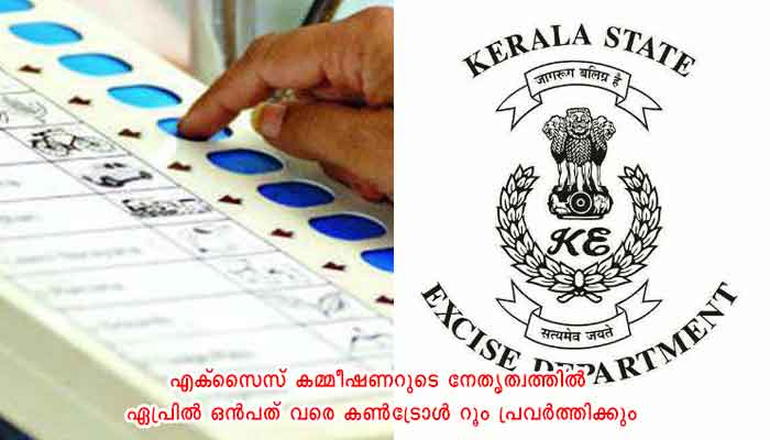 തെരഞ്ഞെടുപ്പ്: പരിശോധന ശക്തമാക്കി എക്സൈസ് വകുപ്പ് കണ്ട്രോള് റൂം തുറന്നു
