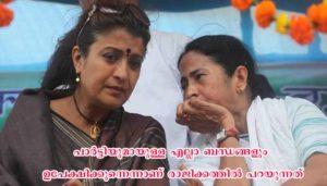 പത്ത് വര്ഷമായി ഇവിടെനിന്നുള്ള എം.എല്.എ ആയിരുന്നു. പാര്ട്ടിയുമായുള്ള എല്ലാ ബന്ധങ്ങളും ഉപേക്ഷിക്കുന്നെന്നാണ് രാജിക്കത്തില് പറയുന്നത്. അഭിനയത്തിലാണ് ഇനി ശ്രദ്ധ. മറ്റു പാര്ട്ടികളില്നിന്ന് നല്ലൊരു ക്ഷണം വന്നാല്, അപ്പോള് ആലോചിക്കുമെന്നും അവര് പറഞ്ഞു.