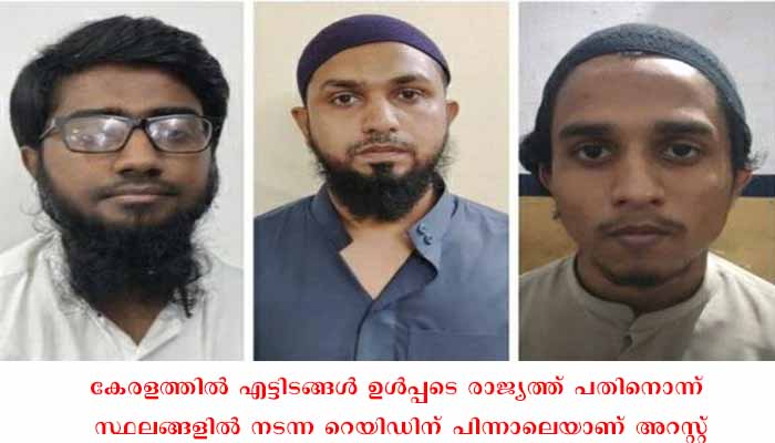 കേരളത്തില് എട്ടിടങ്ങള് ഉള്പ്പടെ രാജ്യത്ത് പതിനൊന്ന് സ്ഥലങ്ങളില് നടന്ന റെയിഡിന് പിന്നാലെയാണ് അറസ്റ്റ്. മലയാളിയായ മുഹമ്മദ് അമീനിന്റെ നേതൃത്വത്തില് സമൂഹമാധ്യമങ്ങള് വഴി ഐ.എസ് ആശയങ്ങള് പ്രചരിപ്പിച്ചെന്നും ചിലരെ വധിക്കാന് പദ്ധതിയിട്ടെന്നും എന്.ഐ.എ വ്യക്തമാക്കി.