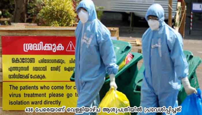 സംസ്ഥാനത്തെ വിവിധ ജില്ലകളിൽ 1,29,938 പേരാണ് നിരീക്ഷണത്തിലുള്ളത്. ഇതിൽ 1,26,088 പേർ വീട്/ഇൻസ്റ്റിറ്റിയൂഷണൽ ക്വാറന്റീനിലും 3850 പേർ ആശുപത്രികളിലും നിരീക്ഷണത്തിലാണ്. 438 പേരെയാണ് വെള്ളിയാഴ്ച ആശുപത്രിയിൽ പ്രവേശിപ്പിച്ചത്. ആറ് പുതിയ ഹോട്ട് സ്പോട്ടുകളുണ്ട്. നിലവിൽ 359 ഹോട്ട് സ്പോട്ടുകളാണുള്ളത്.