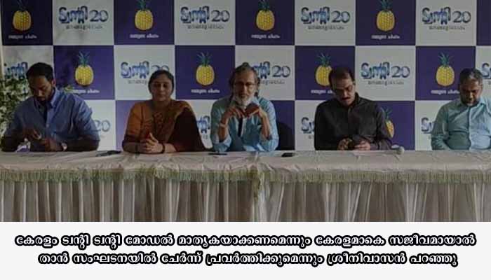 സംവിധായകന് സിദ്ദിഖും നടന് ശ്രീനിവാസനും ട്വന്റി ട്വന്റിക്കൊപ്പം പ്രവര്ത്തിക്കുകയാണെന്ന് കഴിഞ്ഞ ദിവസങ്ങളില് അറിയിച്ചിരുന്നു. ശ്രീനിവാസനും സംവിധായകന് സിദ്ധിഖും ഉപദേശക സമിതിയിലുണ്ടാവും. ഇരുവരും മത്സരരംഗത്തില്ല. കേരളം ട്വന്റി ട്വന്റി മോഡല് മാതൃകയാക്കണമെന്നും കേരളമാകെ സജീവമായാല് താന് സംഘടനയില് ചേര്ന്ന് പ്രവര്ത്തിക്കുമെന്നും ശ്രീനിവാസന് പറഞ്ഞു.