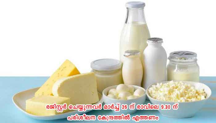 കൊല്ലം: ഓച്ചിറ ക്ഷീരോല്പ്പന്ന പരിശീലന വികസന കേന്ദ്രത്തില് മാര്ച്ച് 26, 27 ദിവസങ്ങളില് വിവിധ ക്ഷീരോല്പ്പന്നങ്ങളുടെ നിര്മാണത്തില് പരിശീലനം നല്കും. രജിസ്ട്രേഷന് ഫീസ് 135 രൂപ. പ്രവേശനം ആദ്യം രജിസ്റ്റര് ചെയ്യുന്ന 20 പേര്ക്ക്. 0476-2698550 നമ്പരിലൂടെ രജിസ്റ്റര് ചെയ്യാം. പങ്കെടുക്കുന്നവര് ആധാര് പകര്പ്പ് ഹാജരാക്കണം. രജിസ്റ്റര് ചെയ്യുന്നവര് മാര്ച്ച് 26 ന് രാവിലെ 9.30 ന് പരിശീലന കേന്ദ്രത്തില് എത്തണം.