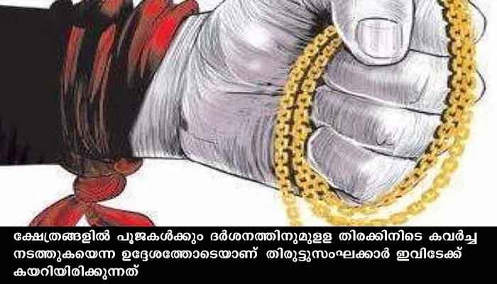 തിരുവനന്തപുരം: തമിഴ്നാട്ടിലെ തിരുട്ടുഗ്രാമങ്ങളില് നിന്നെത്തി കവര്ച്ച ചെയ്യുന്ന സംഘങ്ങള് കേരളത്തില് സജീവം. കോവിഡ് ഭീതിക്കിടയിലും ജനജീവിതം സാധാരണ ഗതിയിലേക്ക് മടങ്ങിയത് ലാക്കാക്കി മോഷണം ലക്ഷ്യമിട്ട് ധാരാളം പേര് നഗരങ്ങളിലും മറ്റു പ്രദേശങ്ങളിലും എത്തിയിട്ടു ളളതായിട്ടാണ് വിവരം. ക്ഷേത്രങ്ങളില് പൂജകള്ക്കും ദര്ശനത്തിനുമുളള തിരക്കിനിടെ കവര്ച്ച നടത്തുകയെന്ന ഉദ്ദേശത്തോടെയാണ് തിരുട്ടുസംഘക്കാര് ഇവിടേക്ക് വണ്ടി കയറിയിരിക്കുന്നത്.