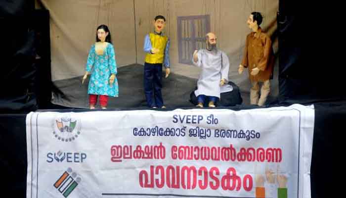 കോഴിക്കോട് : തെരഞ്ഞെടുപ്പ് ബോധവത്ക്കരണത്തിന്റെ ഭാഗമായി സ്വീപ്പിന്റെ ആഭിമുഖ്യത്തില് പാവനാടകം സംഘടിപ്പിച്ചു. ഷൊര്ണൂര് തോല്പാവക്കൂത്ത് കലാകേന്ദ്രവും ആയഞ്ചേരി സമന്വയ പാവനാടക സംഘവും കലക്ട്രേറ്റ് അങ്കണത്തിലാണ് പാവനാടകം അവതരിപ്പിച്ചത്. കലക്ടര് എസ് സാംബശിവറാവു, അസി കലക്ടര് ശ്രീധന്യ സുരേഷ് തുടങ്ങിയവര് ചടങ്ങില് പങ്കെടുത്തു.