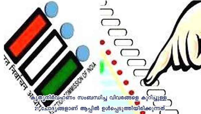 തിരഞ്ഞെടുപ്പ് ഉദ്യോഗസ്ഥര് വോട്ടിങ് മെഷീന് സ്വീകരിക്കുന്നത് മുതല് വോട്ടെടുപ്പ് കഴിഞ്ഞു മെഷീന് തിരികെ ഏല്പ്പിക്കുന്നത് വരെയുള്ള കൃത്യനിര്വഹണം സംബന്ധിച്ച വിവരങ്ങളെ കുറിച്ചുള്ള 21 ചോദ്യങ്ങളാണ് ആപ്പില് ഉള്പ്പെടുത്തിയിരിക്കുന്നത്. അതത് സമയങ്ങളില് തന്നെ ഉദ്യോഗസ്ഥര് മറുപടികള് രേഖപ്പെടുത്തും. തിരഞ്ഞെടുപ്പ് ഓഫീസര്, റിട്ടേണിങ് -അസിസ്റ്റന്റ് റിട്ടേണിങ് ഓഫീസര്മാര്, പൊലീസ് തുടങ്ങിയവരുടെ നമ്പറുകള് ആപ്പില് ഉള്പ്പെടുത്തിയത് വഴി തിരഞ്ഞെടുപ്പ് വിവരങ്ങള് കൃത്യതയോടെയും അതിവേഗത്തിലും നിരീക്ഷിക്കാന് കഴിയുമെന്ന് ജില്ലാ ഇന്ഫര്മാറ്റിക്സ് ഓഫീസര് വി. കെ. സതീഷ് കുമാര് പറഞ്ഞു.