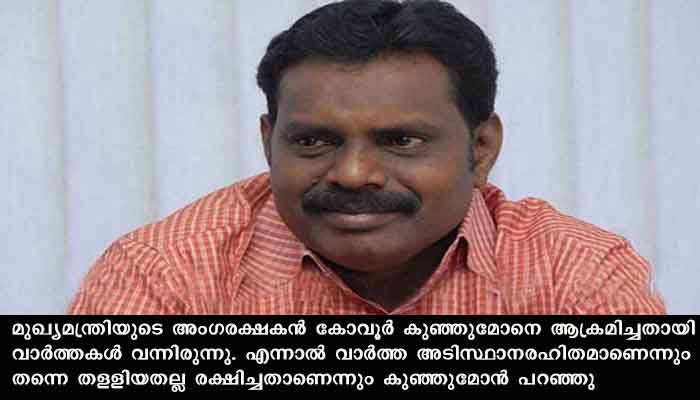 കൊല്ലം: മുഖ്യമന്ത്രിയുടെ അംഗരക്ഷകന്‍ തന്നെ തളളിയതല്ലെന്ന്‌ കോവൂര്‍ കുഞ്ഞുമോന്‍ എംഎല്‍എ. മുഖ്യമന്ത്രിയുടെ അംഗരക്ഷകന്‍ കോവൂര്‍ കുഞ്ഞുമോനെ ആക്രമിച്ചതായി വാര്‍ത്തകള്‍ വന്നിരുന്നു. എന്നാല്‍ വാര്‍ത്ത അടിസ്ഥാനരഹിതമാണെന്നും തന്നെ തളളിയതല്ല രക്ഷിച്ചതാണെന്നും കുഞ്ഞുമോന്‍ പറഞ്ഞു.