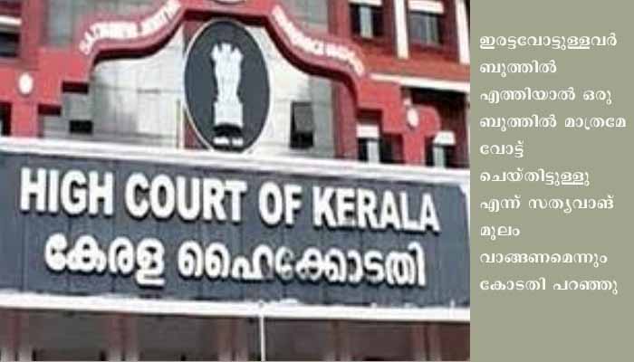 ഇരട്ടവോട്ടുള്ളവര് ബൂത്തില് എത്തിയാല് ഒരു ബൂത്തില് മാത്രമേ വോട്ട് ചെയ്തിട്ടുള്ളു എന്ന് സത്യവാങ്മൂലം വാങ്ങണമെന്നും കോടതി പറഞ്ഞു. സുഗമമായ വോട്ടെടുപ്പിന് ആവശ്യമെങ്കില് കേന്ദ്ര സേനയെ നിയോഗിക്കാമെന്നും ഹൈക്കോടതി വ്യക്തമാക്കി.