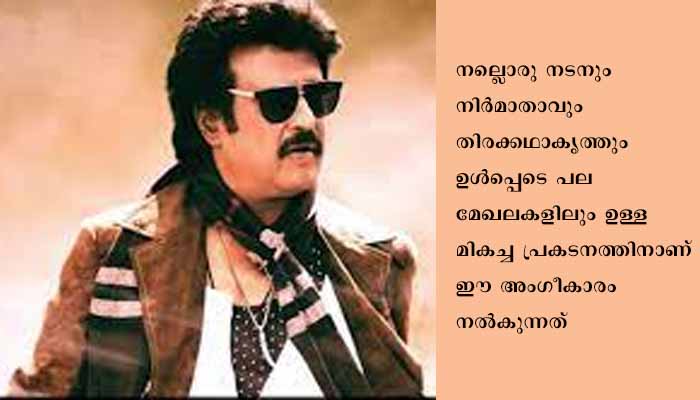 കൊച്ചി: സിനിമ മേഖലയിലെ ഏറ്റവും പരമോന്നത പുരസ്കാരമായ ദാദാസാഹിബ് ഫാൽക്കെ പുരസ്കാരത്തിന് ഇന്ത്യൻസിനിമയുടെ അഭിമാനതാരം രജനീകാന്ത് അർഹനായി. കേന്ദ്രമന്ത്രി പ്രകാശ് ജാവദേക്കർ പരമോന്നത ബഹുമതിക്ക് രജനീകാന്ത് അർഹനായ വിവരം അറിയിച്ചത്. ഇപ്പോഴിതാ തന്നെ തേടിയെത്തിയ പരമോന്നത ബഹുമതിക്ക് സർക്കാരിന് നന്ദി പറയുകയാണ് താരം. സർക്കാരിനും പ്രിയപ്പെട്ട നരേന്ദ്രമോദിജിക്കും, പ്രകാശ് ജാവേദ്ക്കറിനും , ജൂറി അംഗങ്ങൾക്കും നന്ദി. എൻറെ യാത്രയിൽ എനിക്ക് കൂട്ടായിരുന്നവർക്ക് ഞാൻ ഈ പുരസ്കാരം സമർപ്പിക്കുന്നു. ദൈവത്തിനും നന്ദി. രജനീകാന്ത് കുറിക്കുന്നു. ഇന്ത്യൻ സിനിമയുടെ ഇതിഹാസതാരം രജനീകാന്തിന് 2019ലെ 51-ാം ദാദാസാഹിബ് ഫാൽക്കെ പുരസ്കാരം നൽകുന്നത് സന്തോഷത്തോടുകൂടി അറിയിക്കുകയാണ്. നല്ലൊരു നടനും നിർമാതാവും തിരക്കഥാകൃത്തും ഉൾപ്പെടെ പല മേഖലകളിലും ഉള്ള മികച്ച പ്രകടനത്തിനാണ് ഈ അംഗീകാരം നൽകുന്നത്. ആശാ ഭോസ് ലെ മോഹൻലാൽ , സുഭാഷ് ഗായ് , ബിശ്വജിത്ത് ചാറ്റർജി, ശങ്കർ മഹാദേവൻ എന്നിവരടങ്ങുന്ന ജൂറിയാണ് കേന്ദ്ര മന്ത്രി നന്ദി പറഞ്ഞു. തെന്നിന്ത്യയിൽ നിന്ന് ഈ പുരസ്കാരം നേടുന്ന പന്ത്രണ്ടാമത്തെ ആളാണ് രജനികാന്ത്. ഇതിഹാസ താരങ്ങളായ ഡോക്ടർ രാജ്കുമാർ , അക്കിനേനി നാഗേശ്വർ റാവു, കെ ബാലചന്ദ്രൻ തുടങ്ങി നിരവധി പ്രമുഖർ മുമ്പ് ദാദാസാഹിബ് ഫാൽക്കെ പുരസ്കാരം നേടിയിട്ടുണ്ട്. പത്മഭൂഷൺ, പത്മവിഭൂഷണും നൽകി രാജ്യം മുൻപ് രജനീകാന്തിനെ ആദരിച്ചിട്ടുണ്ട്.