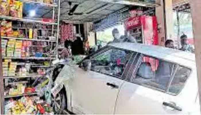 ബേക്കറിയുടെ എതിര്വശത്ത് ഓട്ടോറിക്ഷ സ്റ്റാന്ഡിനു സമീപം നിര്ത്തിയിട്ടിരുന്ന കാര് സ്റ്റാര്ട്ട് ചെയ്തു മുന്നോട്ടു എടുത്തപ്പോള് നിയന്ത്രണം നഷ്ടപ്പെടുകയായിരുന്നു. ഓട്ടോയിലും ബൈക്കിലും ഇടിച്ച ശേഷം എതിര്വശത്തുള്ള ബേക്കറിയിലേക്കു പാഞ്ഞു കയറുകയായിരുന്നു.
