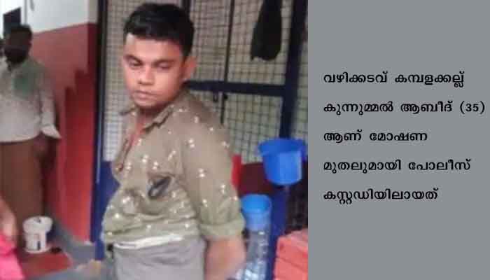 നിലമ്പൂര്: ക്ഷേത്ര മുതലുമായി യുവാവ് പോലീസ് കസ്റ്റഡിയില് . വഴിക്കടവ് കമ്പളക്കല്ല് കുന്നുമ്മല് ആബീദ് (35) ആണ് മോഷണ മുതലുമായി പോലീസ് കസ്റ്റഡിയിലായത്. നിലമ്പൂര് മുമ്മുളളി കുട്ടിച്ചാത്തന് കാവിലാണ് സംഭവം. ക്ഷേത്രത്തില് മോഷിടിക്കാനെത്തിയ യുവാവ് ഭണ്ഡാരവും ഓഫീസും കുത്തിത്തുറന്ന് ക്ഷേത്ര മുതലുകള് കൈക്കലാക്കി. . തടുര്ന്ന മദ്യപിച്ച് ലക്ക് കെട്ട് മോഷണമുതലും കെട്ടിപ്പിട്ച്ച കിടന്നുറങ്ങി പോയി.