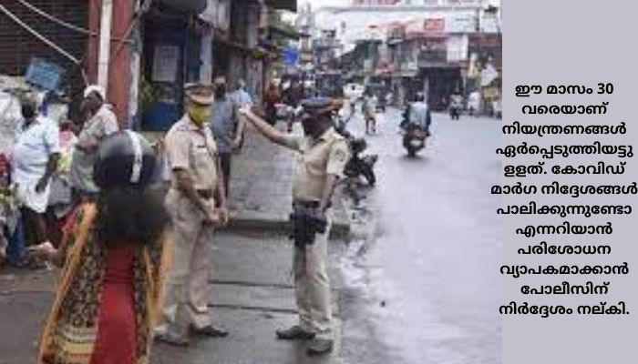 ഈ മാസം 30 വരെയാണ് നിയന്ത്രണങ്ങള് ഏര്പ്പെടുത്തിയട്ടുളളത്. കടകള് രാത്രി 9 മണിവരെ മാത്രമേ പ്രവര്ത്തിപ്പിക്കാവൂ. അടച്ചിട്ട ഹാളുകളില് പരിപാടികളില് 100 പേരെ മാത്രമേ പങ്കെടുപ്പിക്കാവൂ. തുറസായ സ്ഥലങ്ങളില് 200 പേര് വരെയാവാം. കൂടുതല് പേരെ പങ്കെടുപ്പിക്കണമെങ്കില് 72 മണിക്കൂറിനുളളിലുളള ആര്ടിപിസിആര് നെഗറ്റീവ് സര്ട്ടിഫിക്കറ്റ് വേണം.