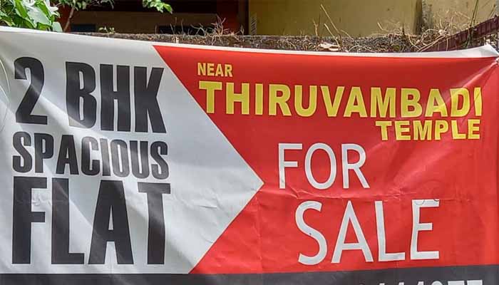 തൃശ്ശൂർ : കഴിഞ്ഞ ദിവസം തൃശ്ശൂരുകാർ നഗരത്തിൽ പലയിടത്തും ഒരു പരസ്യ ബോർഡ് കണ്ടു . ഫുട് പാത്തിലൂടെ വേഗത്തിൽ നടന്നു പോകുന്നവരും ഓടുന്ന വാഹനത്തിൽ നിന്നും പുറം കാഴ്ചകളിലേക്ക് കണ്ണും നട്ടിരുന്നവരും ആ പരസ്യം വായിച്ച് തെല്ലൊന്നമ്പരന്നു കാണണം. പെട്ടന്നു കണ്ണിലുടക്കുന്ന പ്രധാന പരസ്യവാചകം തിരുവമ്പാടി ക്ഷേത്രം വിൽപനയ്ക്ക് -‘Thiruvambadi Temple For Sale’ എന്നായിരുന്നു.