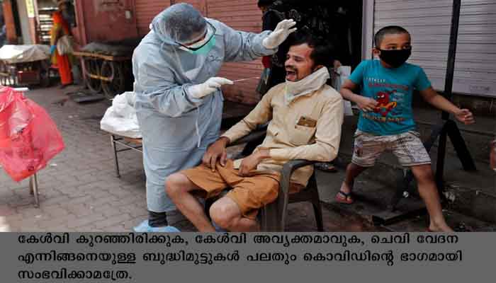 മറ്റ് ചിലരില്‍ കേള്‍വി പ്രശ്‌നങ്ങളും കൊവിഡ് ലക്ഷണമായി വരാം. കേള്‍വി കുറഞ്ഞിരിക്കുക, കേള്‍വി അവ്യക്തമാവുക, ചെവി വേദന എന്നിങ്ങനെയുള്ള ബുദ്ധിമുട്ടുകള്‍ പലതും കൊവിഡിന്റെ ഭാഗമായി സംഭവിക്കാമത്രേ.
